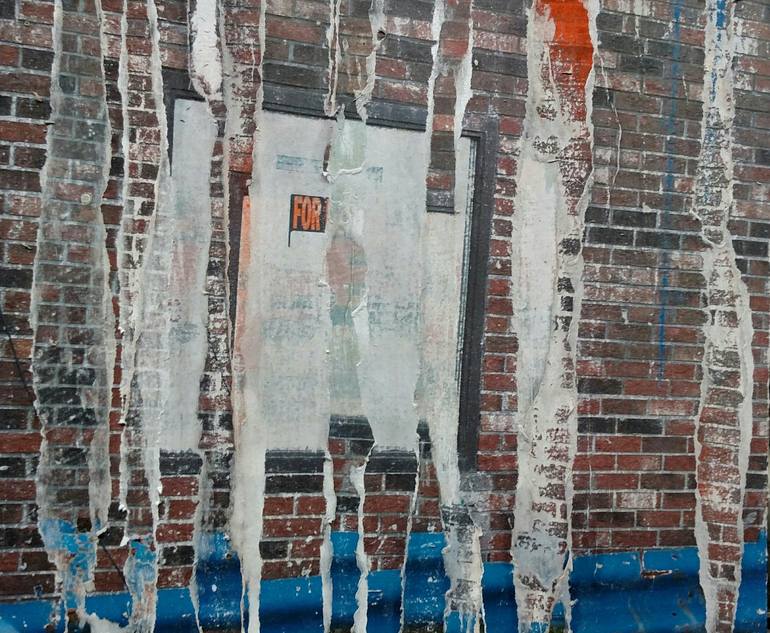 Collage: photo images and spray paint on board