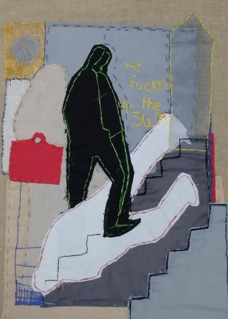 I would like to make the viewer indentify himself with the protagonist of the work in a profound conflict confrontation with there selves where everyone can kill a piece of his self in order to rise. A psychological, philosophical placement , between fabrics and threads.