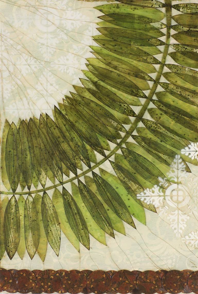 Fern Green is a 12x18in mixed media on Lucite panel and is a part of the Paper Mosaic Botanical Collection which explorations of the physical beauty of nature. Sikie is inspired by the forms, colors and textures that are resplendent in the natural world. Sikie uses both sides of the Lucite with patt...