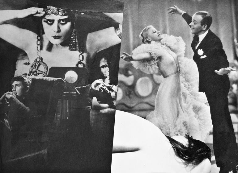 Photomontage inspired by 1920s and 1930s Hollywood movies, matted in white