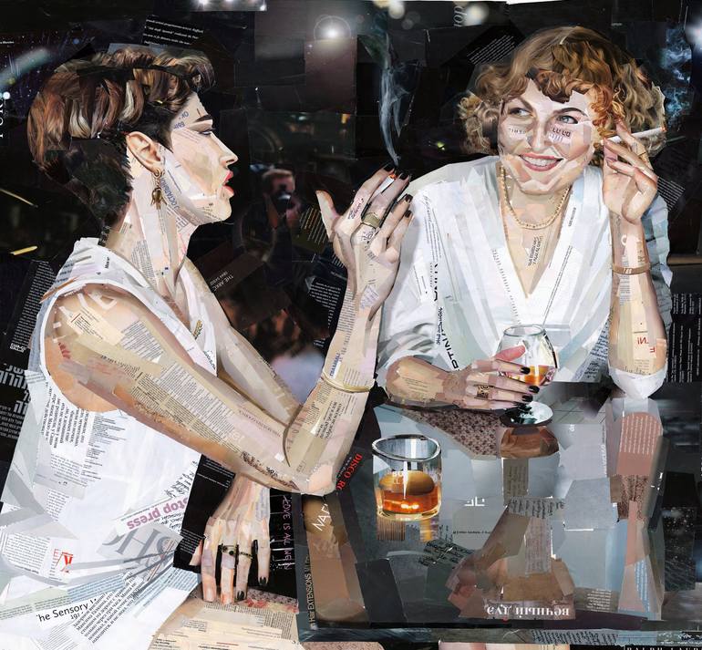 Imaginary scene, which never took place in reality. Decorative handmade collage from magazine clippings. Dimensions include white margins.