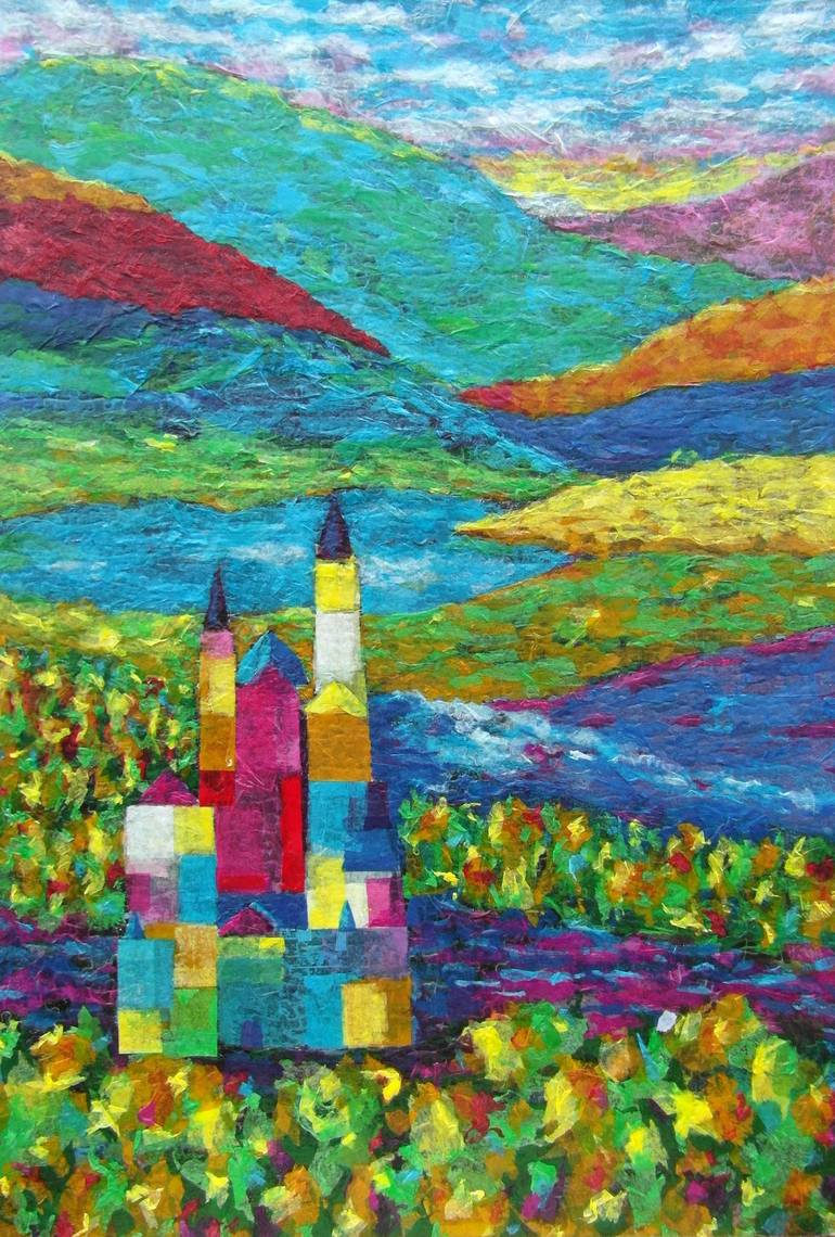 Baviera oculta. Hidden Bavaria. Collage de papel seda sobre puzzle. Paper collage on jigsaw puzzle.