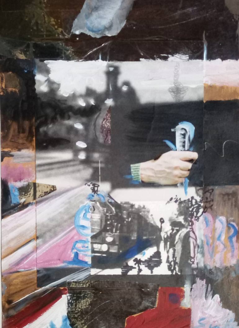 Art work on paper with mixer tecnique cm 20x30 acrylic and collage on paper 2017 signed by Roberto Scala artist made in Italy with certificato of autentica