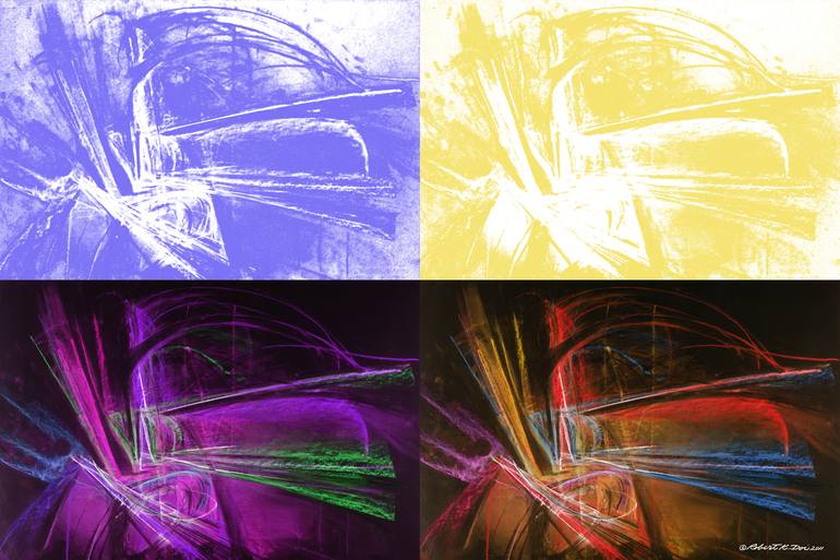 Using Photoshop I digitally manipulated and repeated the original drawing "Impact" using various color combinations to profgress from a simple to a more complete palette of colors. The original "Impact" is a pastel drawing on white paper created in 1987.