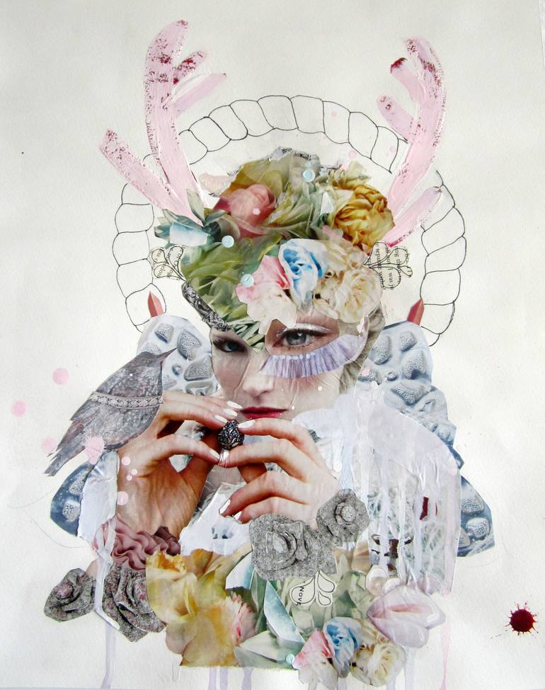 Born in Iceland 1976. Iris is inspired by the woman, her mind and body. The concept for most of her work is the endless battle that often happends between the two. Nature is a big inspiration and is often shown as an escape way to get lost in where nature and the person become one. Fashion and magazines are another influence in her art making, where the reality sometimes gets in the second place. Her artworks are collages or mixed media where she cuts and pastes, add´s pen and pencil drawings, magazine and book pages, gouache, acrylic, fabric and just everything that fits to create the final outcome. Her work is changing everyday so she is quickly moving forward with her art style. Located in Reykjavik, ICELAND.
