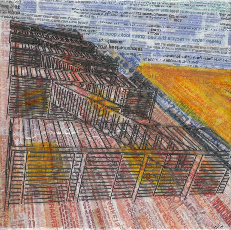 This piece is inspired by New York City: small alleyways, huge avenues, cracked pavement, glass skyscrapers, brick storefronts, vibrant graffiti, grand bridges and rusting fire escapes. I enjoy using recycled materials in my artwork. I strive to make them all look like treasures, regardless of thei...