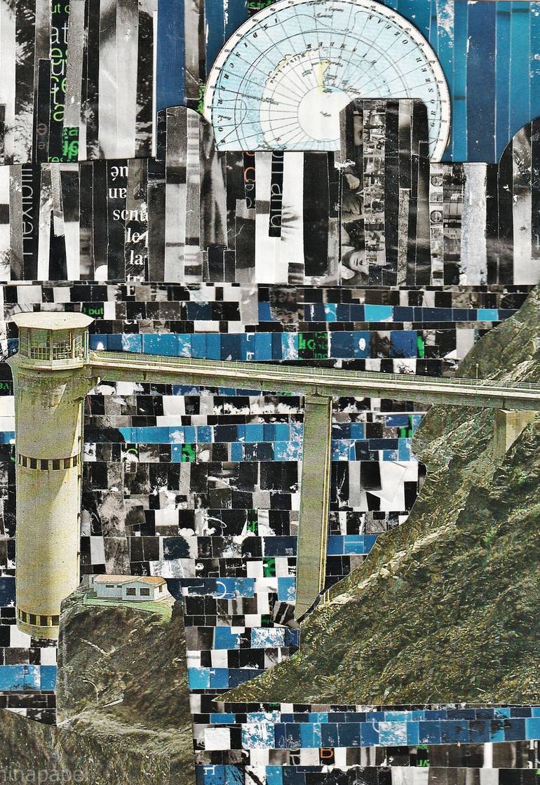 Landscape, collage on paper and cardboard. Arranged in small pieces glued and pressed.