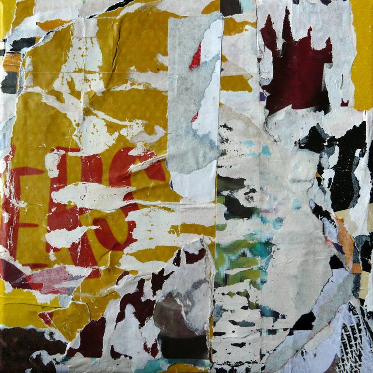 Torn posters on canvas. Part of the LBL series made from distressed posters collected in the streets of London (Brick Lane area). The collected posters are further destroyed to enter into a new composition. Ready to hang (framing optional)