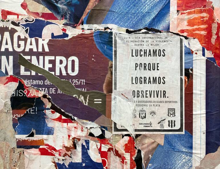 From the series La Plata constructed from posters collected from the walls of La Plata (Argentina). Ready to hang (Framing optional)