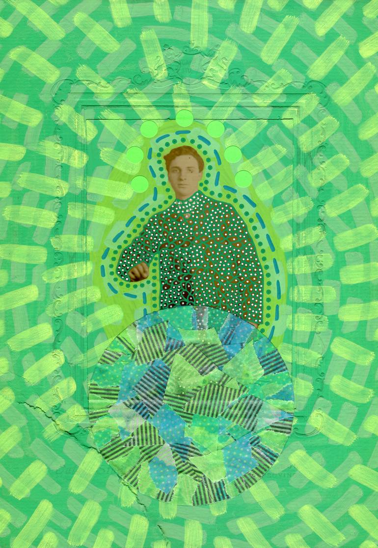 Overview: The neon shades used as decorative pattern around the subject, helped me to find inspiration for the final title. Materials used: Pens, stickers and washi tape on vintage photo. Important notes: • This is an original contemporary art collage realised on a vintage photo or postcard. • A...