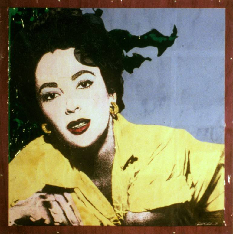 "Liz" a portrait of Elizabeth Taylor is a fine example of Brekan's early collage art works. Working from found images, I chose to employ the California Assemblage collage techniques of the West coast pop art movement to execute this timeless portrait with xerographic prints, theatric gels, gold leaf...