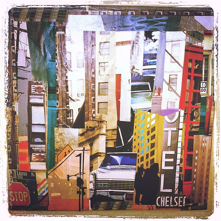 I rely heavily on found paper from a myriad of sources; old books, magazines, photographs, prints, and vintage ephemera. I start a piece with a general idea of where I want it to go, but it usually takes on its own form and I find myself headed in a direction I didn’t anticipate. As a self taught artist, I began experimenting with various materials and mediums. I quickly became intrigued by the creative accessibility of paper and it has remained a constant medium throughout my body of work. By incorporating hand cut pieces of paper mixed with paint, I create multi-layered, intricate, abstract collages, punctuated with bright colors. With each piece, the first layers are more erratic and free-form but I eventually find a sense of harmony and balance through the chaos. Deconstruction is a consistent theme in my work, as well as an integral part of my creative process. I see beauty in the imperfections and the wear and tear. To me, deconstruction creates a transcendence of time and a revitalization of the past. My experimental approach to art releases it from a lot of seriousness and has allowed me to constantly grow and evolve as an artist. I gather creative inspiration from graffiti and street art, urban and natural landscapes, and geometric shapes that mimic architecture. I am drawn to the abstract elements of art; color, shape, line, and texture. I create out of my curiosity to see what something might look like when I can find the means to translate my vision to the substrate.