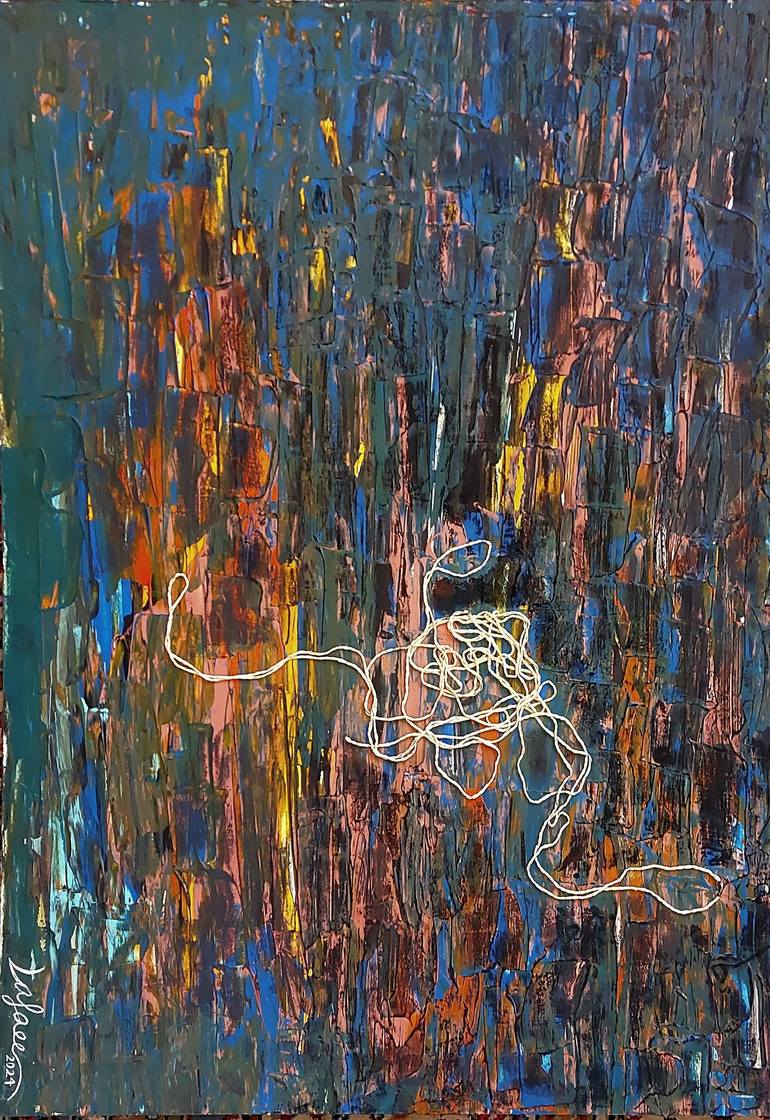 Oriental artists are always influenced by oriental paintings. Carpet is one of the most important symbols of art. Its color and texture have formed in my subconscious and art has influenced me. This work is an abstract form of Iranian carpet, full of color and thread. The shape of the thread is simi...