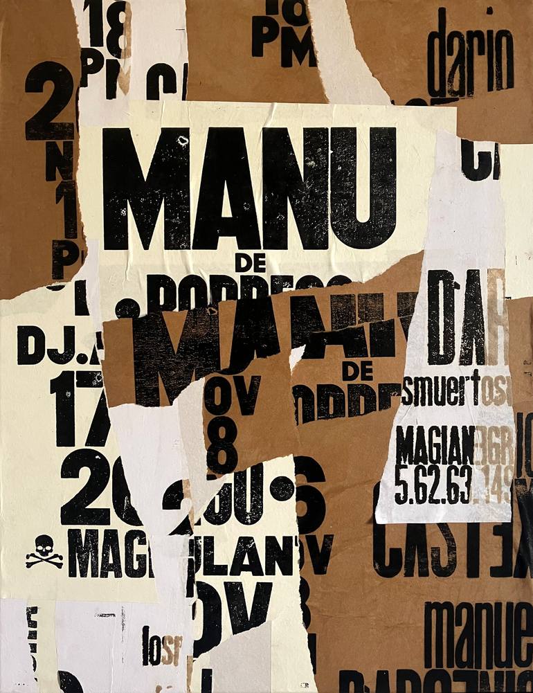 Torn posters on canvas. This series of works concentrates on the construction of rhythm and composition from typographic posters printed in collaboration with Magia Negra Letterpress in La Plata (Argentina). Ready to hang (framing optional)