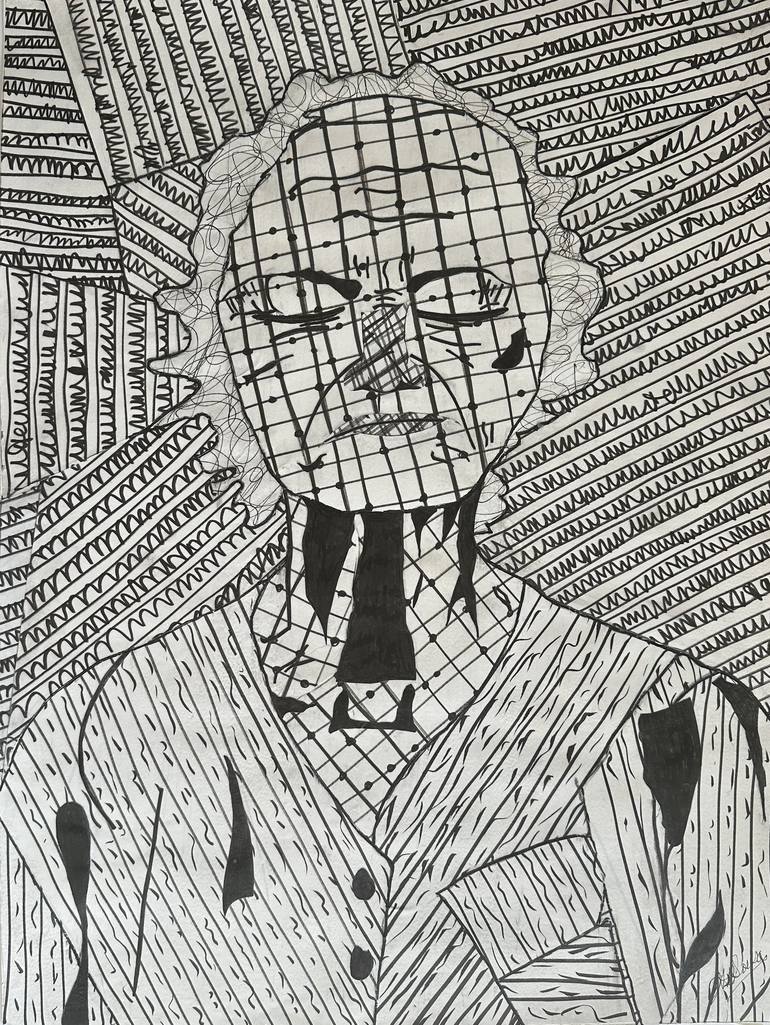 These are elaborate collage pieces. I create designs with ink on sheets of paper. On a piece of heavy watercolor paper or Multimediaboard I sketch out the image I want to represent with these designs. From there it is a process of choosing which design goes where, cutting the pieces to fit the speci...