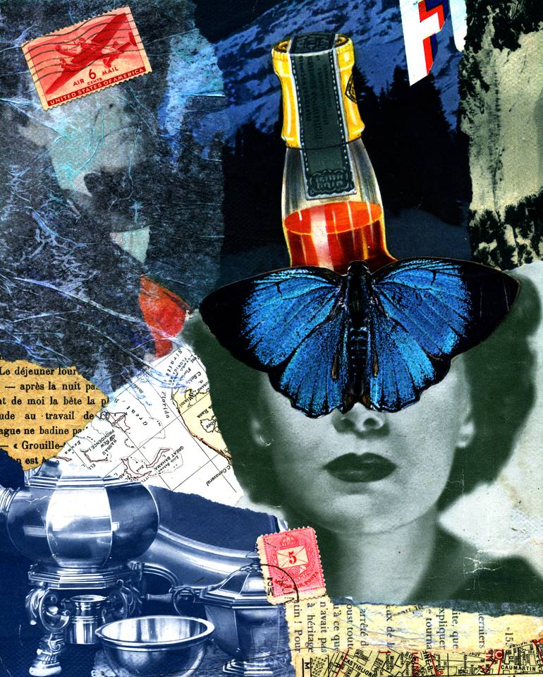Artist statement: Collage lends itself to improvisation, spontaneity and the unexpected discovery. I begin with no final product in mind but put something down and respond to the materials and try to find images that resonate with each other. Sometimes this happens quickly but more often it takes a long time before I complete a collage. I have always been drawn to the surrealistic, the poetic image and the dreamlike.