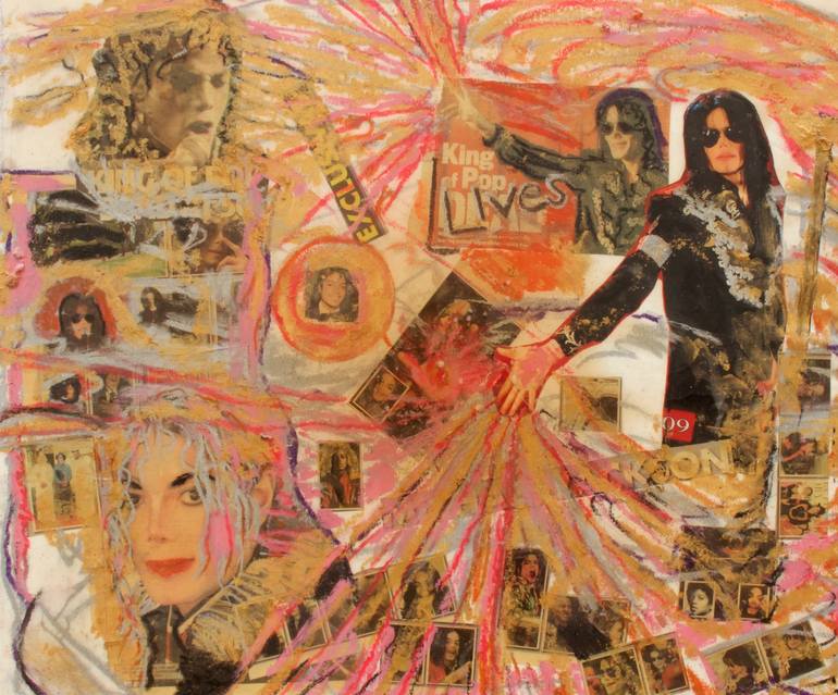 Painted after the untimely death of the King of Pop this painting celebrates his life and music. This piece also examines his changing appearance and struggle with his image.