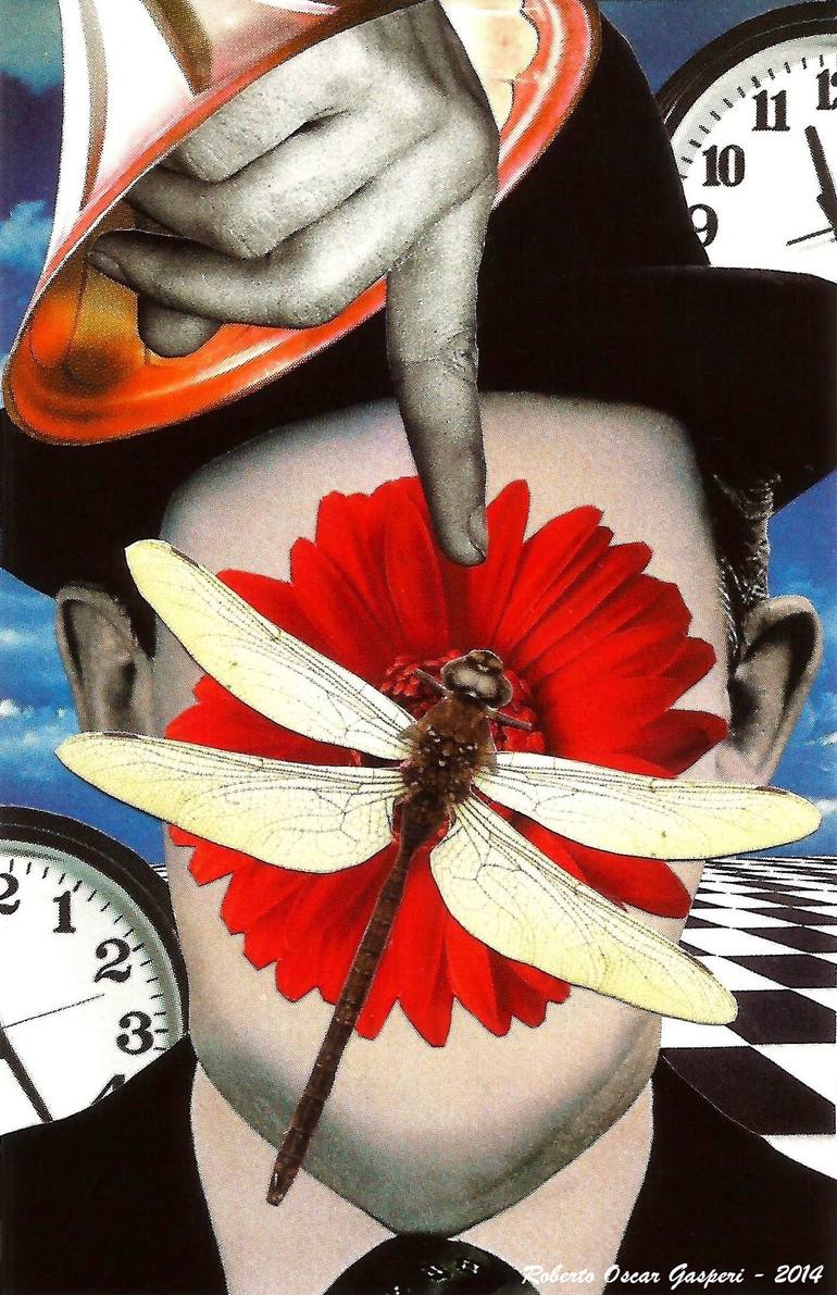 Roberto Oscar Gasperi (1953) is an artist who resides in Buenos Aires. He makes it very clear in every piece of Art he creates that his favourite tools are "scissors, paper and glue". Yes, you guessed it correctly he creates collages. And what a prolific artist he is as well. His family must have a hard time negotiating all the scraps of paper he generates as a by-product of his collage making. Roberto's collages take you into a surreal world. However, his surrealism is based on real world characters in a surreal or incongruous setting, such as football players in the desert with a saintly figure looking down on them, to a boat floating along a canyon or even a Queen's Guard standing to attention in a pastoral setting. One can easily relate to all of Roberto's collages (compared to say some of the old world surrealism such as Dali) as his characters and settings are all contemporaneous. However, that is where you have to stop. It is difficult to fathom what is going on within Roberto's mind. Not being fluent in Spanish may make it a double jeopardy. However, this made it even more enjoyable for me as we can fill the pictures with our own fantasies. That is what creates the mystique around Roberto's collages. His subjects take on an immense range and variety as well from Oriental Figures to Classical and Modern Architecture and from roadblocks made of giant fingers to astronauts. So have a great time dwelling on some of Roberto's Artwork here. Do not worry, when you are done here there is plenty more to keep you occupied for weeks in his Pages and Blogs. And in the end while you will have had a most enjoyable time, you will still not be any deeper into Roberto's mind. Bon Voyage or as Roberto might say Buen Viaje. John Smith** Paul Maenhout: Congratulations. I like your pictures very very very much. The surrealistic setup reminds me to famous painters as Rene Magritte and Salvador Dali. I do not understand why you get so few likes, this work belongs tot the very best on Youpic, maybe the best of all. A lot op people here have no own style, everyone copies from everyone. Your style is unique. I feel very curious again and again after the story that is hidden in every composition, every picture awakes my fantasy. This differs completely from the next boring flower or insect. The favourite tools of Roberto Oscar Gasperi (born 1953), a Buenos Aires-based psychologist, are only scissors, paper and glue.