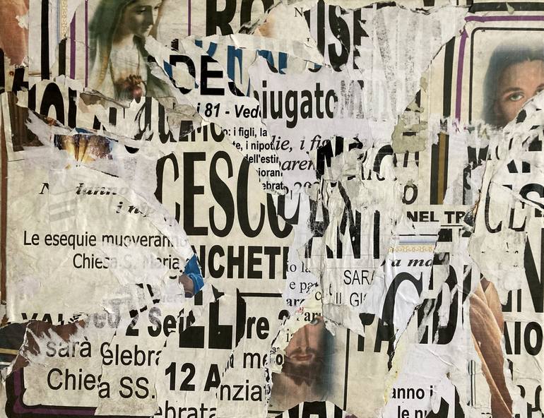 *** Currently exhibited at Marzelles Museum in Marmande (France) as part of my solo show 'Urban Identities' until Nov 4, 2023 *** From the series Napoli constructed from papers and posters collected on the walls of Naples. This one is constructed mostly from death notices glued to the walls and des...
