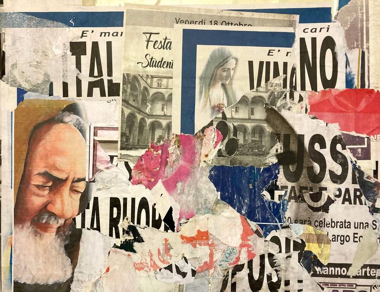 Was exhibited at the Charmey Museum (Switzerland) during the '11éme Triennale Internationale du papier' First canvas of the series Napoli from papers and posters collected on the walls of Naples. It is constructed mostly from death notices glued to the walls and destroyed by weather and passerby. A...