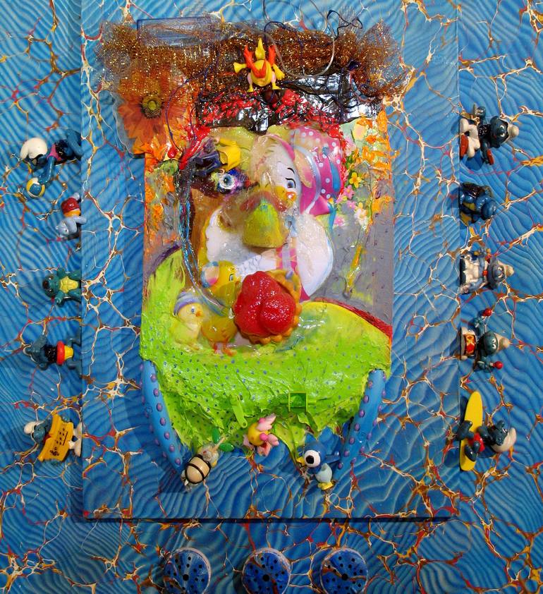 Acrylics on plywood with found objects and sound chip