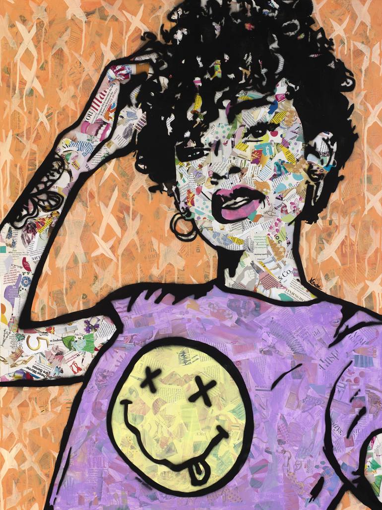 The visual representation of self love and confidence. Mixed media collage portrait 30x40 perfect for a collector with attitude.
