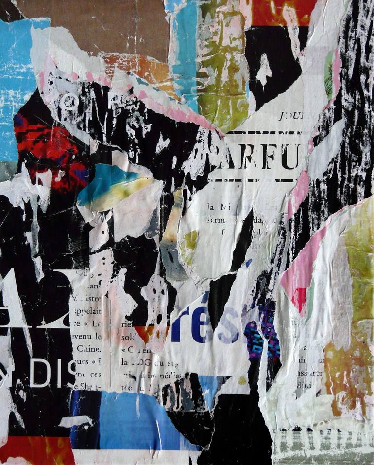 Torn posters on canvas. Part of the PARIS series made from distressed posters collected in Paris (France). Ready to hang (does not require framing)