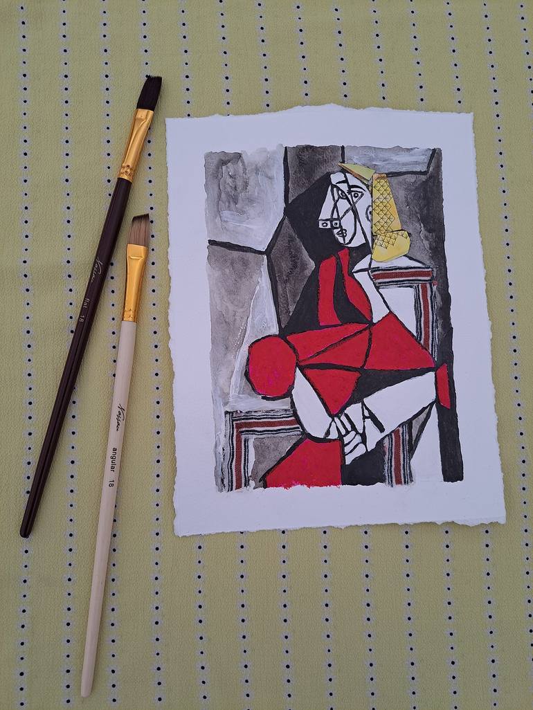 Miniature loose copy of the painting..Pablo Picasso? .. Done on watercolor paper?..in mixed media.?? The size of the work is 13×16. ?