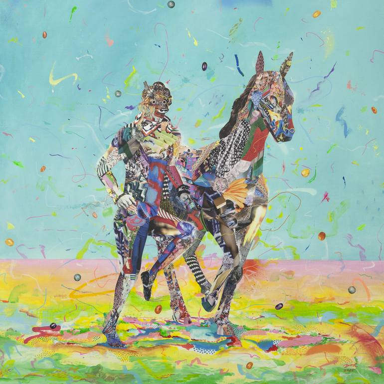 Human is too ahead, give space to animals. concerning animal treat by human, such as factory farming, sports hunting and animal abuse. Acrylic, Collage, Marker on Canvas