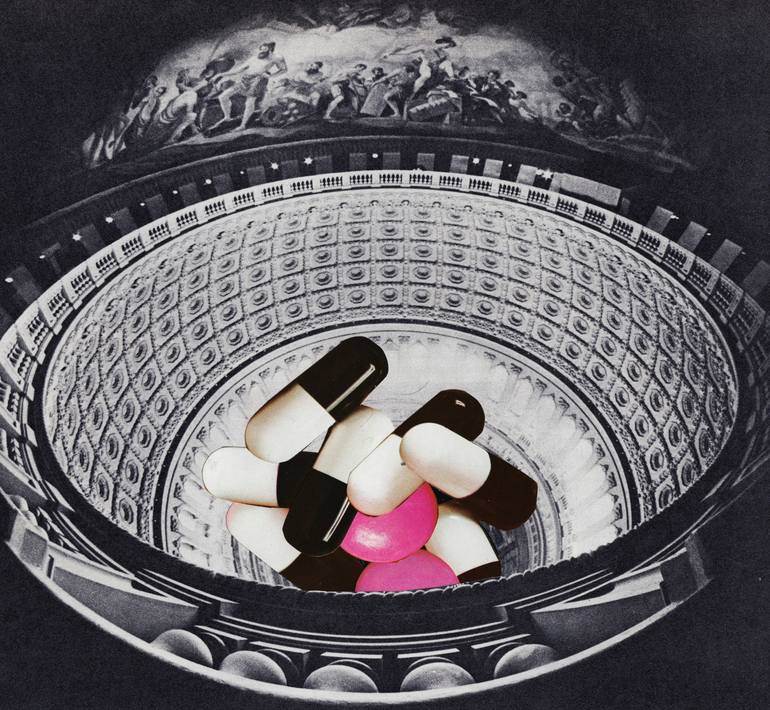 Handmade collage Vintage magazine Pills in the Church