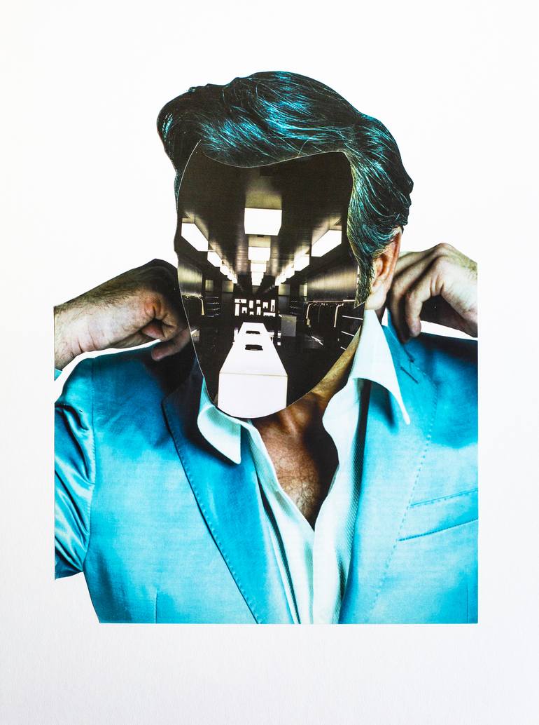 Paper collage . Surreal interpretation in contemporary portraiture from pop artists .