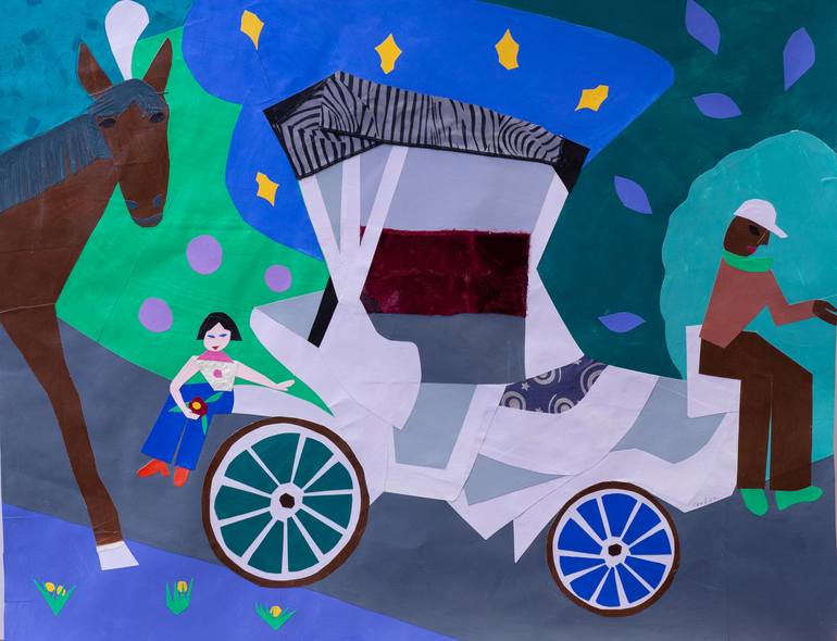 Artwork is created as part of dialog with poet Alice Pero (). It is based on one of my pastel Plain Air studies done in Central Park, New York. It is so good we still have the horse carriages. I love horses and horses love to work.