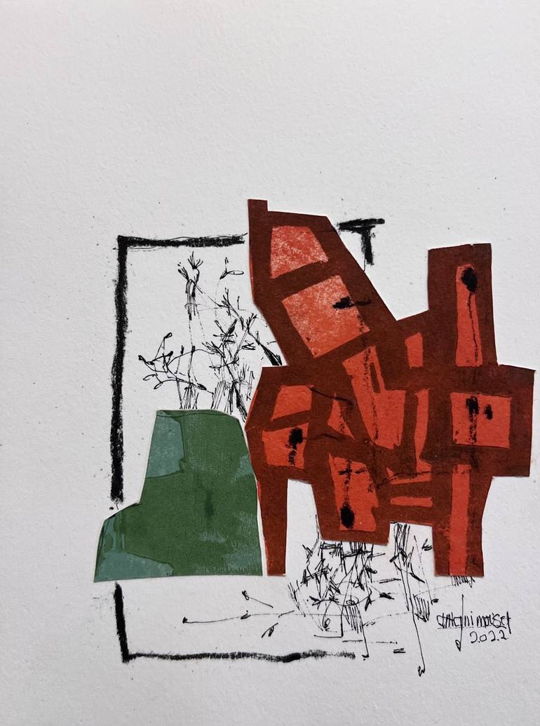 Reimagining landscape is a collage project in which i used my relief printed on paper artworks as my main collage material. A home,garden and sky are the main elements in children’s drawings,in this collection i’m rearranging and reimagining these elements to see it in a different context.