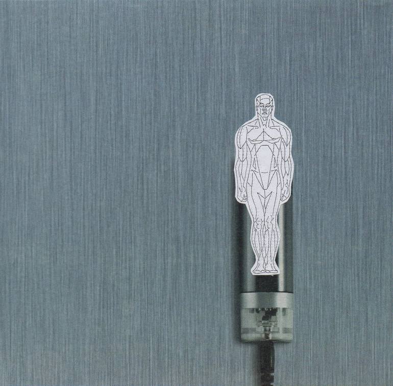 This unframed collage of paper and xerography on cardboard is part of the series “A daily artwork” and its subject is “Human cloning”. I started work on “Human cloning” imagining that there are factories of clones that make them in series like products of supermarket and, therefore, marked each mode...