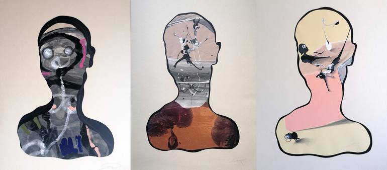 Stefano Mazzolini was born in Parma in 1968. At the age of nine he was nominated for the "Design and City" award organized by the municipality of Parma. In 1989 he graduated as a Master of Art in pictorial decoration at the Paolo Toschi Institute in Parma. He dedicated himself for several years to the restoration and conservation of wall paintings. In 1990 he first lived in London and subsequently moved to New York for a short period. He manifests his graphic style in a gestural and immediate way, the dynamic line creates drops of acrylic on paper. Piloted stains well managed without following drawings and projects, thus replacing the brush with ampoules and spatula. Intriguing portraits, fairy-tale environments and mythological animals are formed, fantastic figures animate a controlled chaos. He creates silhouettes of androgynous subjects, using paper collages to assemble and glue layers of faces that are always hidden and minimal. With mixed acrylic colors and enamels he obtains fabrics, colored skins which he applies on canvas wrapping the work, metal grafts, application of various elements, the subjects are always deliberately ambiguous and free to be interpreted, input to reach our dreams. By cutting the canvas and superimposing it he constructs the painting into sculpture. He manipulates the fabric of the painting bringing the image to three-dimensionality. While on the canvas with oil he expresses his vision of the hidden, evanescent color backgrounds, shaded by transparencies but precise in representing objects, people and intrinsic things and formed by a very complex structure like everything that lives and forms. Hints of cities, landscapes between nature and animals that empathetically interact with detailed objects, convulsive scenarios of neo-modern plans and perspectives, where the vision of man is absent, but still rich in his humanity in every circumstance. With sculpture he strengthens artistic identity. Thus inventing a new three-dimensional representation, an exclusive invention of Lycra sculpture. Resin, a treated and consolidated synthetic fabric, offers a new conception of sculpture, human and alien figures, stylized silhouettes, always suspended between the sacred and the profane, draperies to form characters out of past and revisited in a modern key.