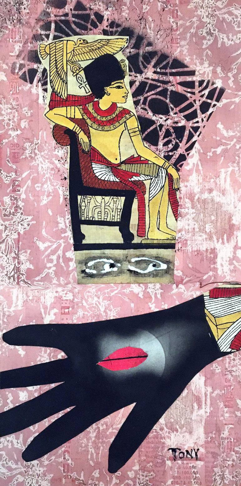 This is a mixed media cut canvas collage of original materials by the Artist. Canvas Wrap is flush with the wall, whereas Museum Wrap is dimensional and stands out. This is a diptych framed as one piece of artwork on paper. Part of a Series: The People One Meets on the Way to Heaven / Portfolio:...