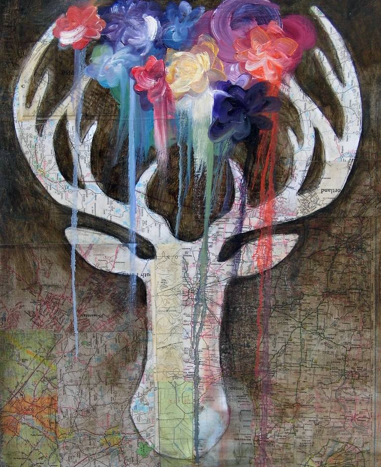 Born in Boston in 1975 and raised in coastal Maine, I earned my degree from Maine College of Art and moved to rural western Maine where I currently paint in my studio in the woods. My mixed media paintings and collages are inquiries into the relationship between nature, science and spirituality, exploring the the tenuous qualities of memory and perception. The meanings of images are broken down and assembled into new contexts to create mysterious narratives. The work evolves by layering paper ephemera and drawings with glazes and opaque oil paints, which simultaneously obscure and reveal. My art seeks to attain a deeper understanding of human perception, interaction with the natural world, and the ways by which we create our own realities.