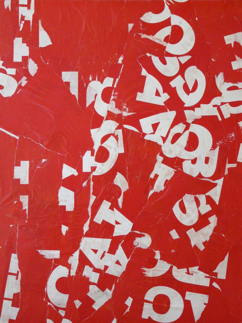 From the SLP series made from distressed posters, collected in Paris under a bridge (Sous Le Pont in french). Work focussing on rhythm and composition with limited elements of typography. Strong, powerful hand-made tears structure the composition.