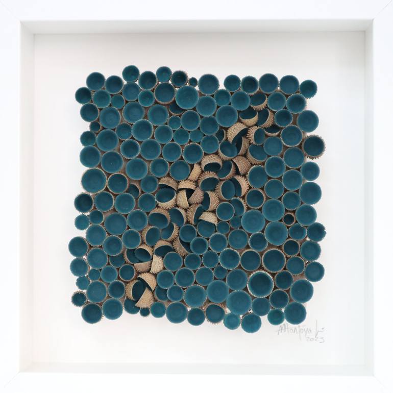 Nature provides us with complex and beautiful forms and I like to take some of those and give them a human touch by disposing pieces to make different compositions. This piece is a collage with acorn hats from kermes oaks that I picked from the scrubland around the mediterranean.