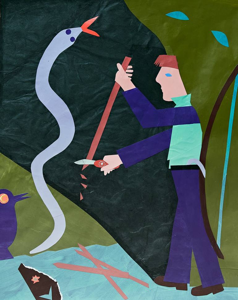 I have been carrying a dialog with an American poet Alice Pero for some time. Somehow our hero and heroine ended up in a strange land with monsters. Since I am very fond of Swiss Army Knife I used it as the main inspiration for my work. Sadly I have discovered that my own Swiss Army knife is a fake....