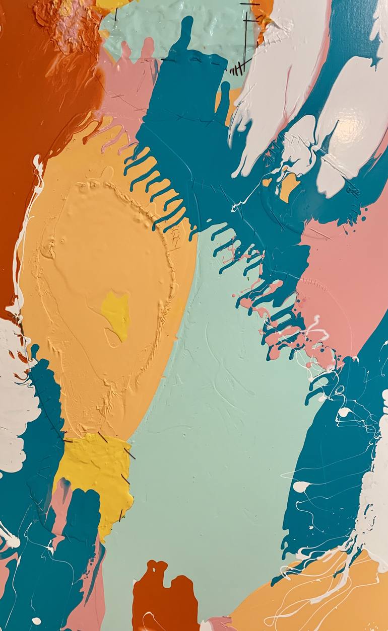 Artist: Jakob Gold Work: Original Acrylic Painting, Handmade Artwork, One of a Kind Medium: Acrylic on Canvas, textile on canvas Style: Abstract Art Siez: 48 X 36 Unframed, Stretched on Wooden Bar, Gallery Wrapped, Ready to Hang My art is a way of expressing my emotions and feelings. It’s vibran...