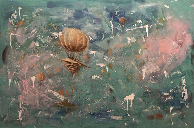 painting collage .size 150 * 100 painted in 2020 with aryl paints and pastels.