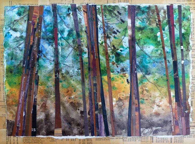 I go to the woods on trails near my home to make peace with the present moment. I come home to my studio and use litter I cleaned up or items from my recycle bin to recreate the nature and peace that lingers within me. I began creating redwoods from old magazines ... From Rags to Redwoods! All wo...