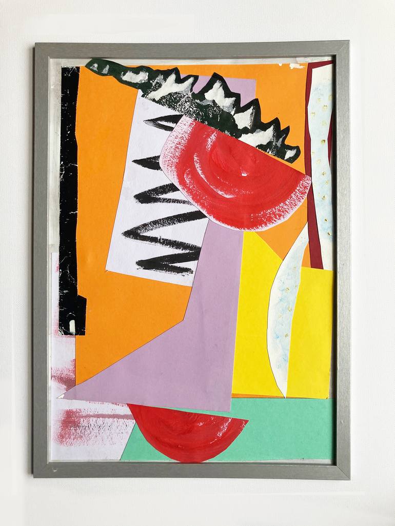 Collage : Acrylic on paper , paper on cardboard Tutti Fruity is a new work from the series of collage inspired by memories of long summer days hoping to incite the feelings of joy of living and happiness in simple pleasures like summer fruits or sweets.
