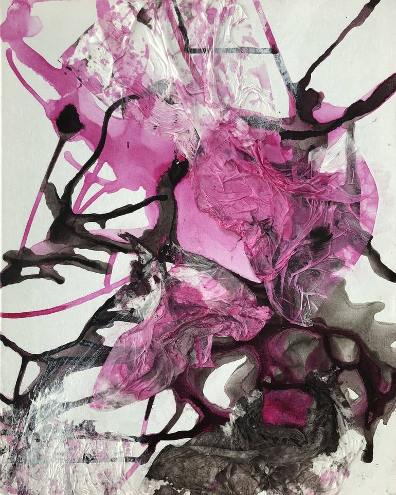 Wild at heart is the power and energy that buzzes within us. Getting rid of the shackles of thought. Surrendering and following your heart to your mind ... An abstract painting made in a mixed technique with the use of acrylic paints, inks and collage on cotton canvas, in shades of pink and brown...