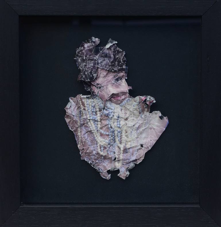 Distressed magazine cutting mounted in a black box frame. I made this series of works with paper whilst in Berlin on Erasmus exchange from Chelsea in 2010. I had limited capacity to transport work home, so I kept stuff small and light. I mounted this piece in a black box frame, when back in the UK, ...