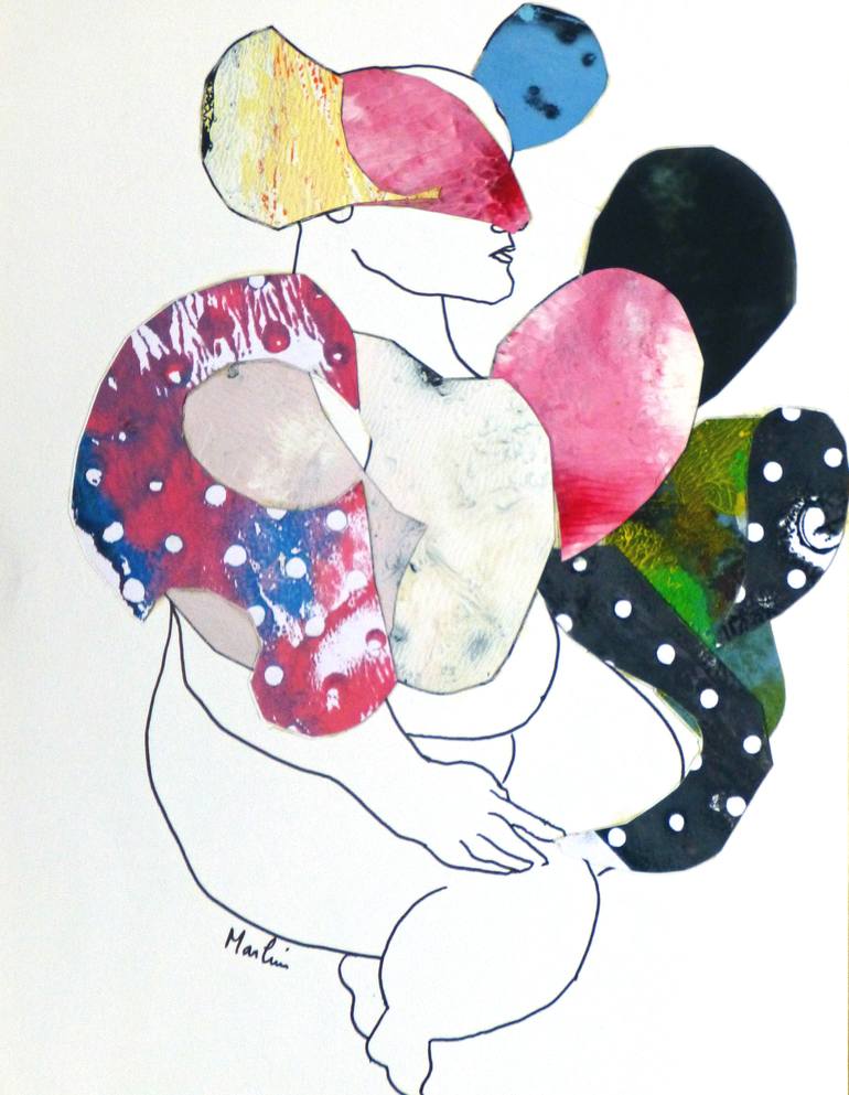 On n'est pas obligé d'être attiré par ces superpositions de rondeurs, il n'en est pas moins vrai qu'elles interpellent ! Ces monstres difformes d'un réalisme saisissant sont posés à l'huile ou à l'acrylique sur toile. Mais ce n'est pas tout, loin de là. L'artiste joue les superpositions, bien visibles quand on se place sur le côté de la toile et que les reflets de lumière accusent les épaisseurs. Utilisant la technique du collage qui se devait, à l'origine, de stimuler l'invention créatrice, Marlin emploie tout ce qui lui tombe sous la main - des bouts de tissus, des fragments de papier calque ou de papier-patron couture - qu'il découpe, compose, mélange, réhausse de couleurs, voire de morceaux de radiographies, fémur, colonne vertébrale, savamment placés à certains endroits pour créer des ombres. Le travail de Marlin, très répétitif, ne manque pas d'attirer la curiosité comme au cirque on s'amuse au spectacle du nain à bosses multiples faisant sur la piste ses pirouettes. On songe aussi aux poupées de celluloïd et de chiffon de notre enfance si souples qu'on pouvait en contorsionner sans risque bras et jambes et même zieuter, un peu sadiquement, les sombres points d'ancrage où se fixaient les membres. Tous ces personnages "impitoyables et graves" constituent un univers peu banal, parfois effrayant nuancé toutefois par une palette chromatique légère et raffinée adoucissant le propos. Pascal Marlin nous semble être un tendre gonflant ses fantasmes pour les mieux apprivoiser ! La lettre mensuelle Les chroniques de Colette Bertot / Février 2005 Pascal Marlin. Bizarre... Vous avez dit "bizarre"? A la Contrast Gallery de Bruxelles