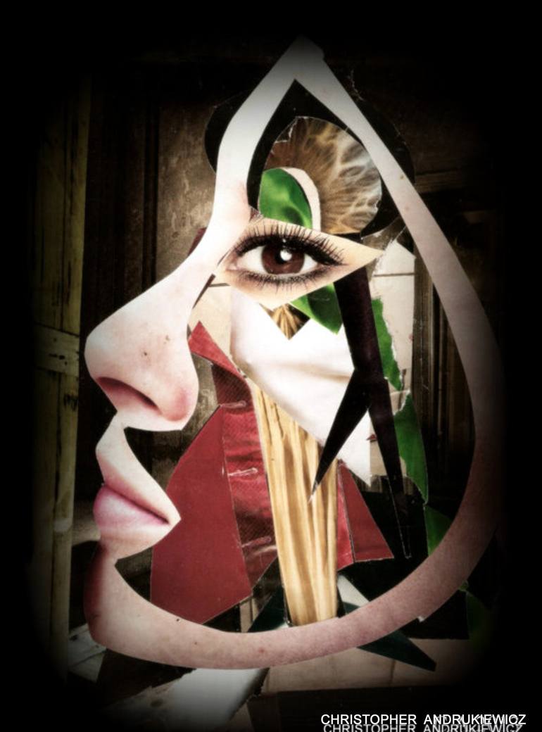 a paste up image that has been developed into a;- enhanced digital collage, open edition prints,