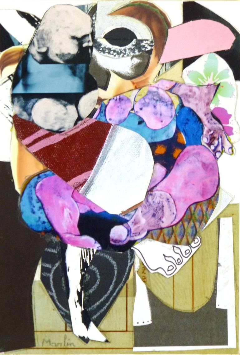 On n'est pas obligé d'être attiré par ces superpositions de rondeurs, il n'en est pas moins vrai qu'elles interpellent ! Ces monstres difformes d'un réalisme saisissant sont posés à l'huile ou à l'acrylique sur toile. Mais ce n'est pas tout, loin de là. L'artiste joue les superpositions, bien visibles quand on se place sur le côté de la toile et que les reflets de lumière accusent les épaisseurs. Utilisant la technique du collage qui se devait, à l'origine, de stimuler l'invention créatrice, Marlin emploie tout ce qui lui tombe sous la main - des bouts de tissus, des fragments de papier calque ou de papier-patron couture - qu'il découpe, compose, mélange, réhausse de couleurs, voire de morceaux de radiographies, fémur, colonne vertébrale, savamment placés à certains endroits pour créer des ombres. Le travail de Marlin, très répétitif, ne manque pas d'attirer la curiosité comme au cirque on s'amuse au spectacle du nain à bosses multiples faisant sur la piste ses pirouettes. On songe aussi aux poupées de celluloïd et de chiffon de notre enfance si souples qu'on pouvait en contorsionner sans risque bras et jambes et même zieuter, un peu sadiquement, les sombres points d'ancrage où se fixaient les membres. Tous ces personnages "impitoyables et graves" constituent un univers peu banal, parfois effrayant nuancé toutefois par une palette chromatique légère et raffinée adoucissant le propos. Pascal Marlin nous semble être un tendre gonflant ses fantasmes pour les mieux apprivoiser ! La lettre mensuelle Les chroniques de Colette Bertot / Février 2005 Pascal Marlin. Bizarre... Vous avez dit "bizarre"? A la Contrast Gallery de Bruxelles