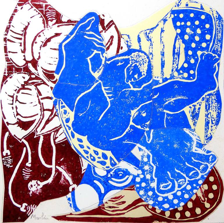 On n'est pas obligé d'être attiré par ces superpositions de rondeurs, il n'en est pas moins vrai qu'elles interpellent ! Ces monstres difformes d'un réalisme saisissant sont posés à l'huile ou à l'acrylique sur toile. Mais ce n'est pas tout, loin de là. L'artiste joue les superpositions, bien visibles quand on se place sur le côté de la toile et que les reflets de lumière accusent les épaisseurs. Utilisant la technique du collage qui se devait, à l'origine, de stimuler l'invention créatrice, Marlin emploie tout ce qui lui tombe sous la main - des bouts de tissus, des fragments de papier calque ou de papier-patron couture - qu'il découpe, compose, mélange, réhausse de couleurs, voire de morceaux de radiographies, fémur, colonne vertébrale, savamment placés à certains endroits pour créer des ombres. Le travail de Marlin, très répétitif, ne manque pas d'attirer la curiosité comme au cirque on s'amuse au spectacle du nain à bosses multiples faisant sur la piste ses pirouettes. On songe aussi aux poupées de celluloïd et de chiffon de notre enfance si souples qu'on pouvait en contorsionner sans risque bras et jambes et même zieuter, un peu sadiquement, les sombres points d'ancrage où se fixaient les membres. Tous ces personnages "impitoyables et graves" constituent un univers peu banal, parfois effrayant nuancé toutefois par une palette chromatique légère et raffinée adoucissant le propos. Pascal Marlin nous semble être un tendre gonflant ses fantasmes pour les mieux apprivoiser ! La lettre mensuelle Les chroniques de Colette Bertot / Février 2005 Pascal Marlin. Bizarre... Vous avez dit "bizarre"? A la Contrast Gallery de Bruxelles